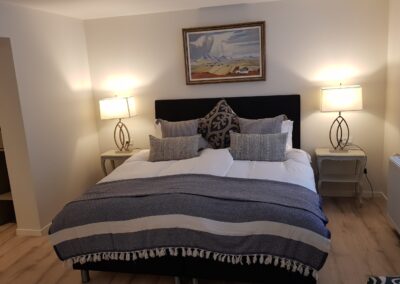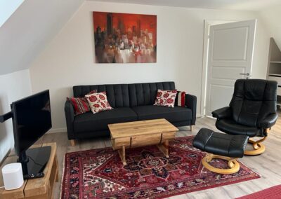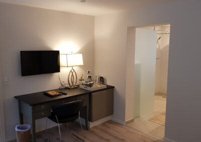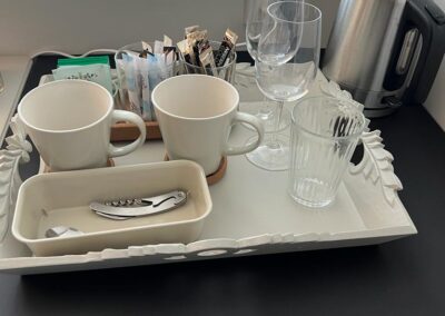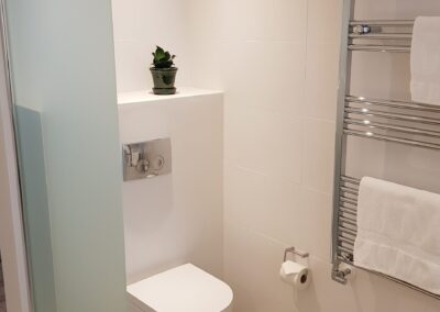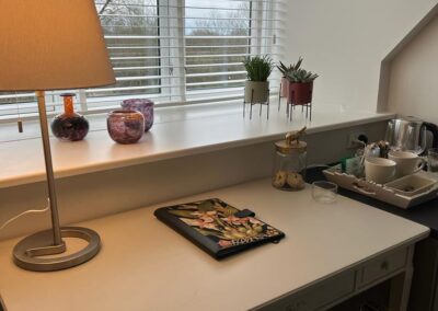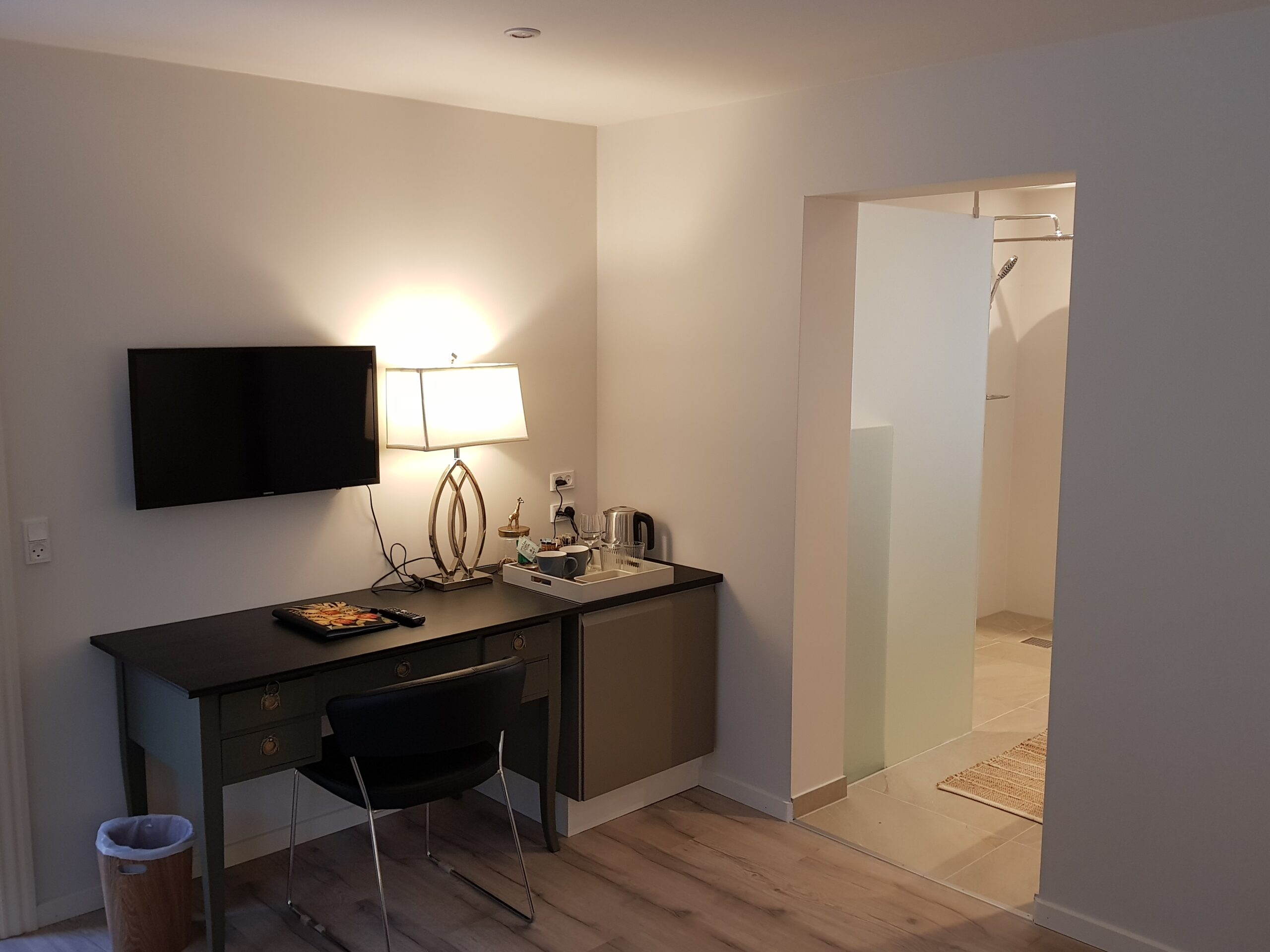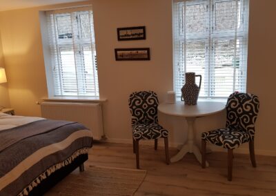 The rooms are both generously sized and will be completely refurbished by the beginning of 2023. They contain very comfortable Super King Size double beds - one room also has a sofa that doubles as a sofa bed (either for an extra adult or 2 smaller children). There is Smart TV, Wifi and Sonos speakers in both rooms. There is also a small fridge and electric kettle, so you can enjoy coffee, tea or anything else in the room. If you need to work on a laptop, there is also a desk in both rooms.
